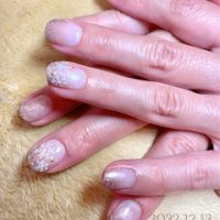 ベージュカラーのグラデーションネイルは上品な手元に。