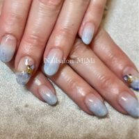 アジサイカラーの優しいきらきらネイル。